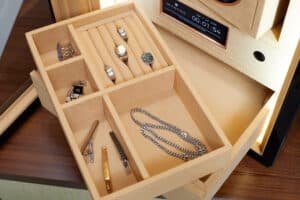 Dedicated storage for jewelry, and accessories, with a removable tray for flexible organization — keeping your entire collection protected in one system.
