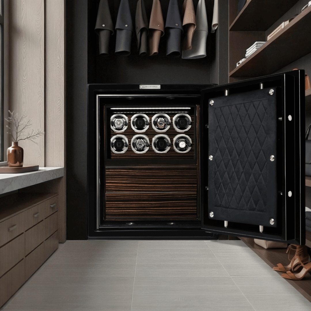 يضيء شريط LED كامل الطول مجموعتك بسطوع سلس ومتساوٍ، مما يُظهر كل ساعة بوضوح دون ظلال قاسية أو أشعة ضوئية. بمجرد فتح الخزنة، تبدو ساعاتك أكثر سطوعًا ووضوحًا ووضوحًا، مما يخلق عرضًا أشبه بمعرض فني مُنسق أكثر من كونه مجرد مساحة تخزين بسيطة. صُممت هذه الإضاءة لتعزيز الرؤية والشعور العام بالفخامة.