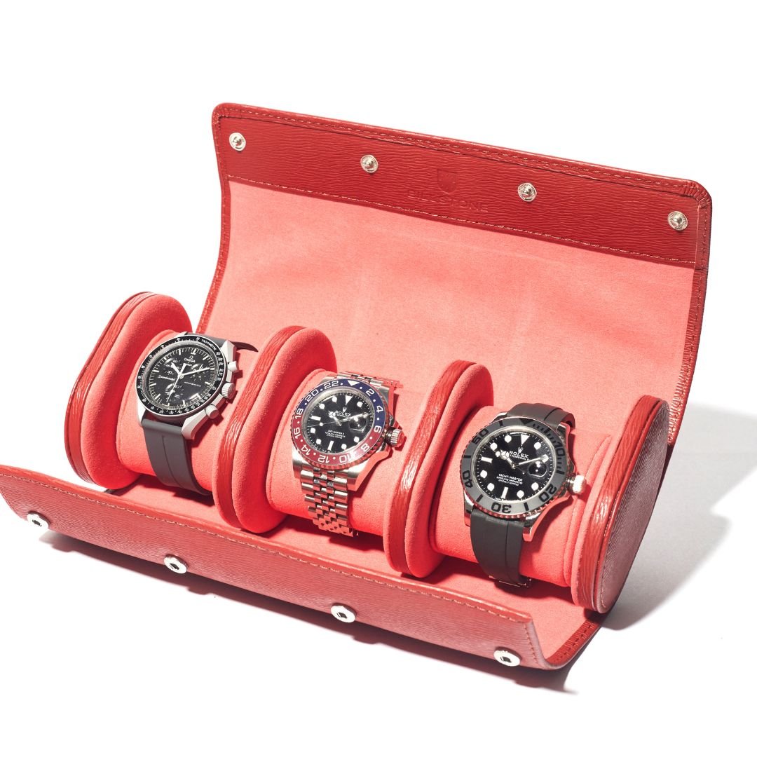Das Billstone Voyager ist einzigartig konstruiert: Jedes Uhrenfach ist einzeln an der Uhrenrolle befestigt, sodass Ihre Uhr beim Öffnen der Rolle nicht versehentlich herausfällt.