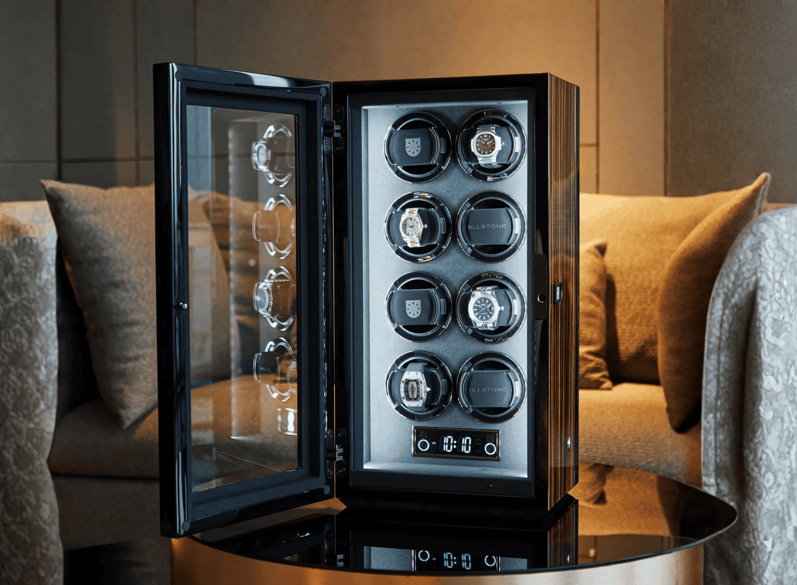 For collectors seeking flexibility and precision, Billstone offers watch winders designed to handle a wide range of calibers. A strong recommendation is the Fusion 8 Fingerprint Macassar Wood. This model combines elegant design with advanced functionality, making it suitable for both beginners and experienced collectors.