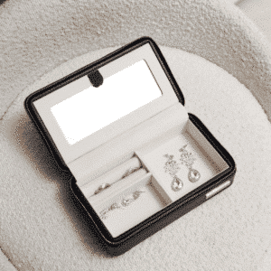 Amour Jewelry Travel Case this case keeps jewelry protected while on the go, featuring ring slots, compartments, and secure padding. It’s a thoughtful and practical gift idea that blends beauty and convenience.