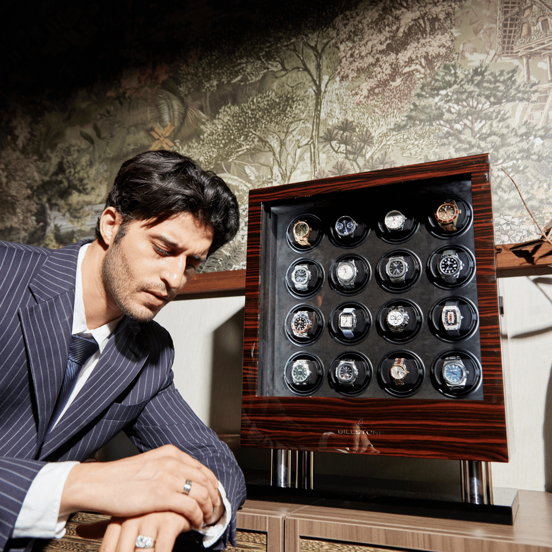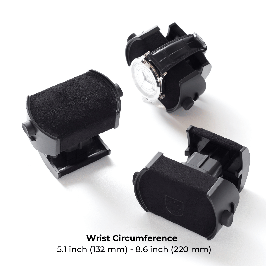 The Billstone watch holder has a patented click-and-lock system that securely fastens your watch to the watch winder so that it does not fall off.