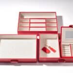 -The third tray includes 3 compartments and a small box with five ring slots and a section for additional jewelry, ensuring that every piece has its designated place