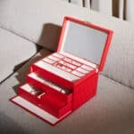 Use the security key to unlock it. Lift the lid and place your items in the designated drawer. Close the lid gently. Regularly check that your items are properly positioned and the box is functioning well, ensuring your valuables remain safe, secure, and beautifully displayed.