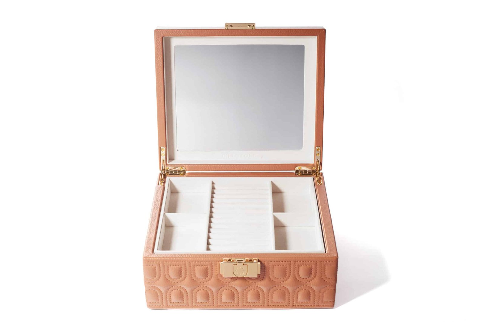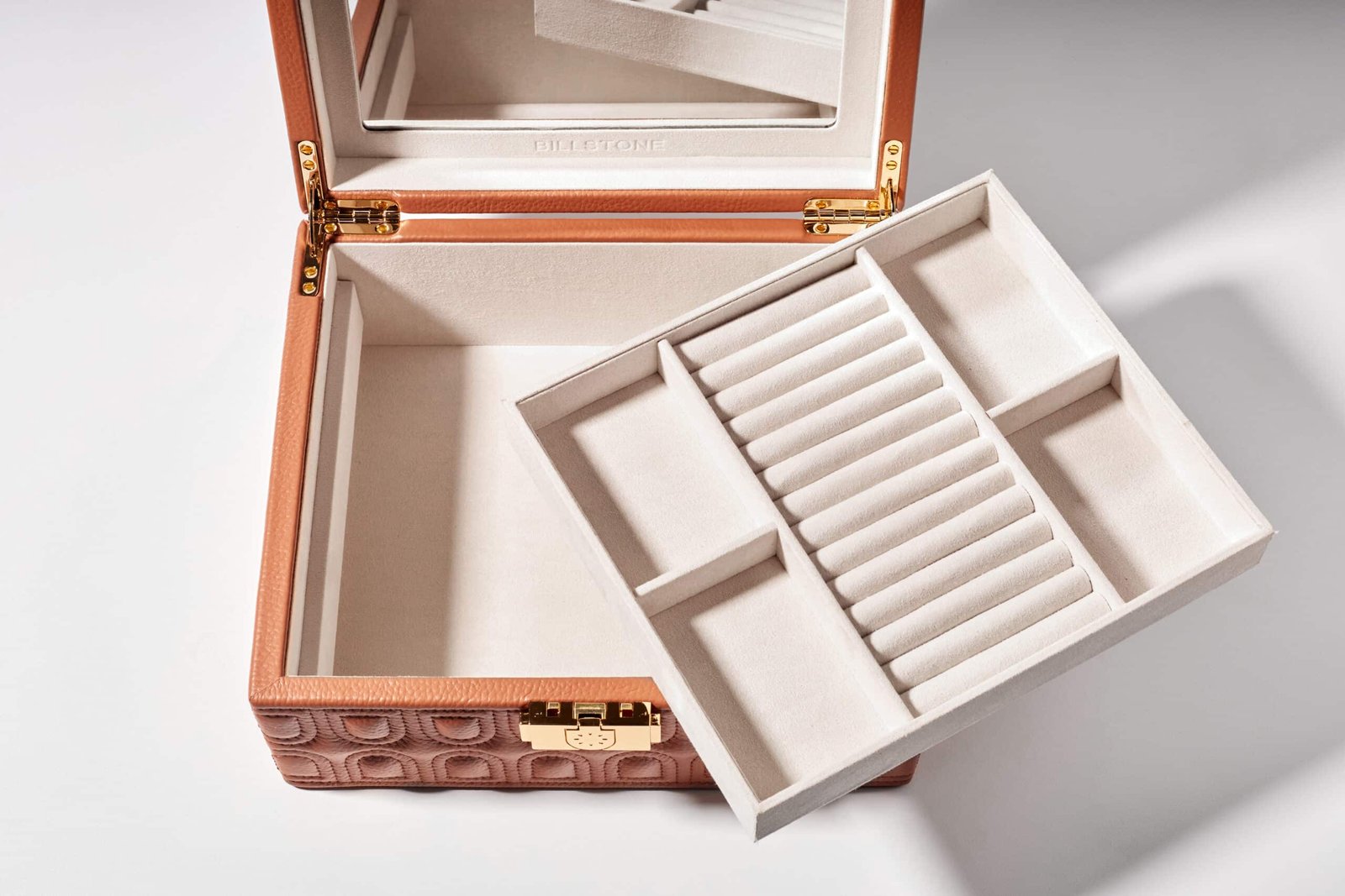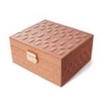 This exquisite piece features a meticulously designed tray with 13 ring slots and 4 compartments to keep your rings, earrings, necklaces, and other accessories organized and secure