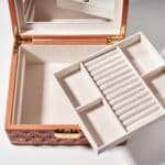 Use the security key to unlock it. Lift the lid and place your items in the designated drawer. Close the lid gently. Regularly check that your items are properly positioned and the box is functioning well, ensuring your valuables remain safe, secure, and beautifully displayed.