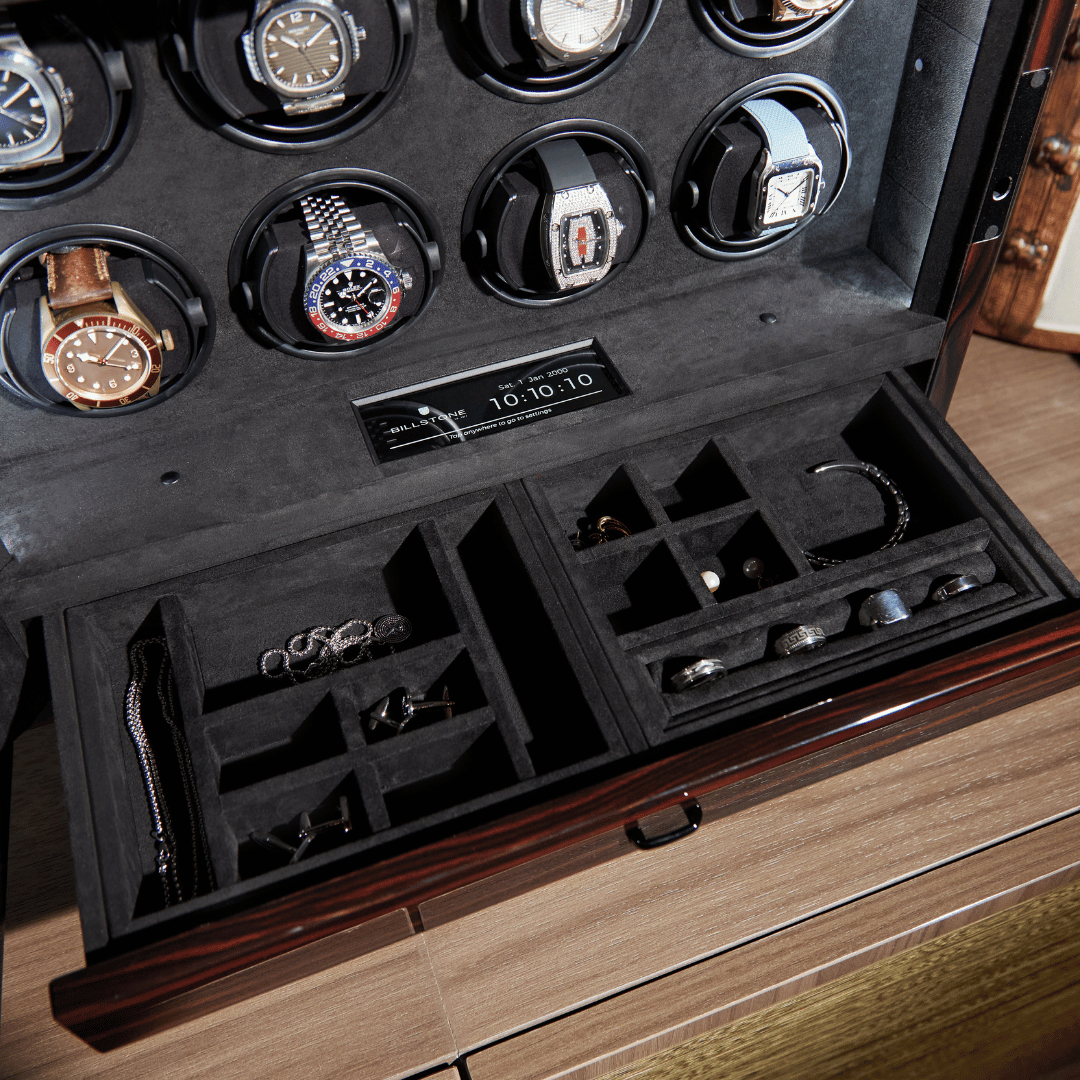 Designed to keep up to 12 automatic watches fully wound and ready to wear.