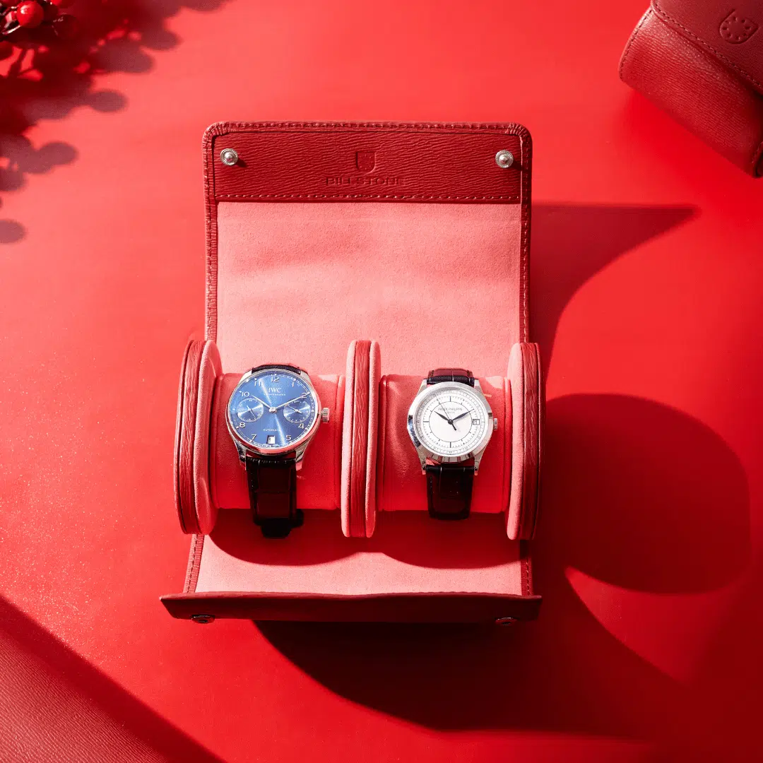 Spring-loaded watch holders adapt to any watch sizes from ladies’ watch to men’s watch.