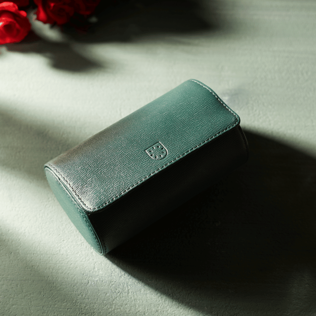 To open the watch roll, unbutton the clasps. Place your watch securely in the designated section, ensuring it fits snugly. Carefully rebutton the clasps. Regularly check that your watch is correctly positioned, ensuring it remains safe, protected, and elegantly stored during your travels.