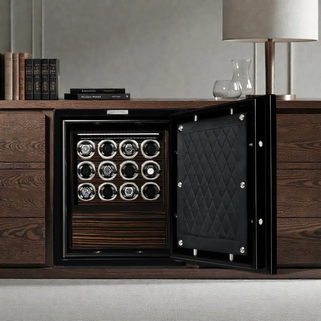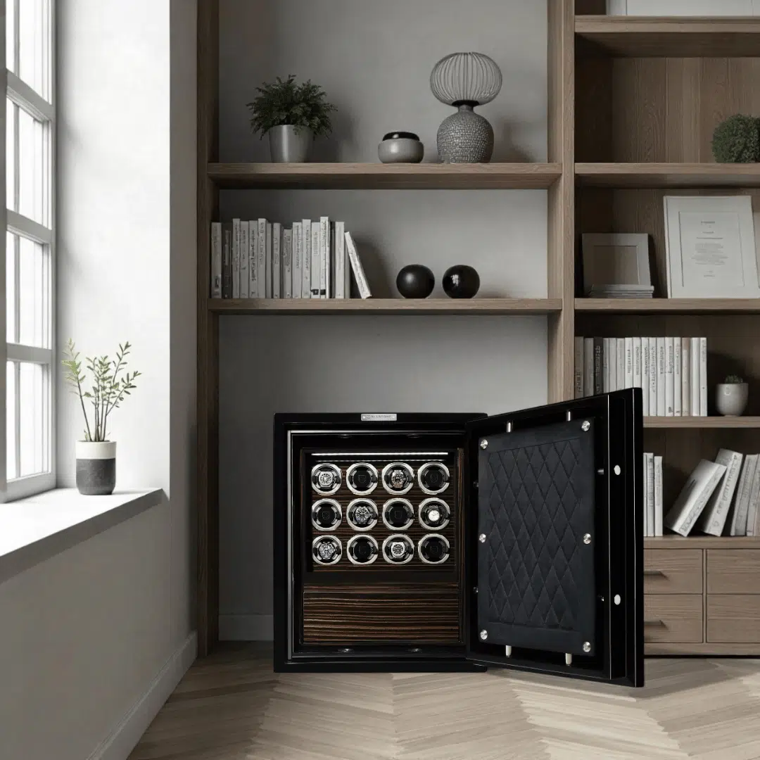 The locking mechanism is engineered with two reinforced contact points that secure the locking bolts from both sides, significantly increasing resistance against prying attempts. This added defense gives collectors greater peace of mind, ensuring the safe remains firmly locked even under force — a crucial layer of protection for high-value timepieces and documents.